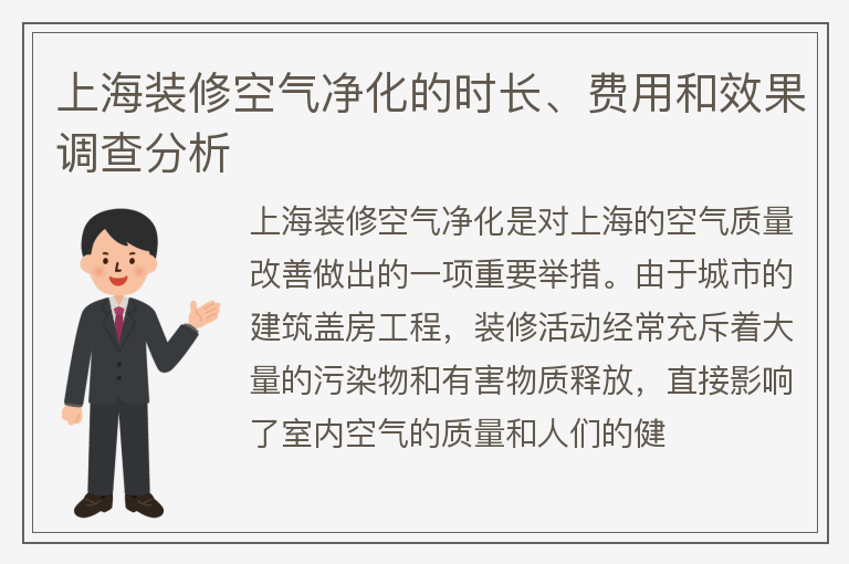 為了更好地了解上海裝修空氣凈化的費用,我們可以參考一些相關的數據。