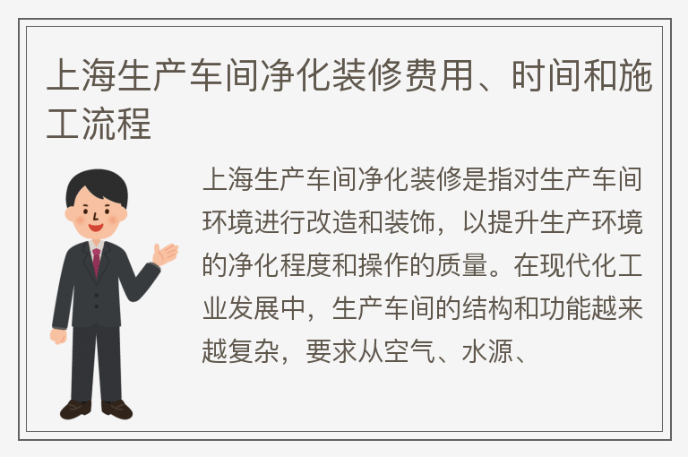 隨著科技的進步和對工作環境的要求逐漸提高,生產車間凈化裝修越來越受到重視。很多人對于上海生產車間凈化裝修需要多長時間一直不太清楚。本文將從不同方面分析上海生產車間凈化裝修所需時間,并為您提供參考。