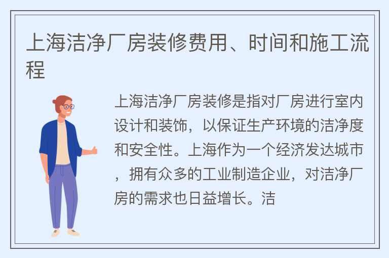 在上海的工業發展中,潔凈廠房的需求越來越大。潔凈廠房裝修是一項重要的投資,而裝修的費用也是企業關注的重要指標之一。本文將對上海潔凈廠房裝修費用進行詳細探討,幫助讀者了解該項投資的相關內容。