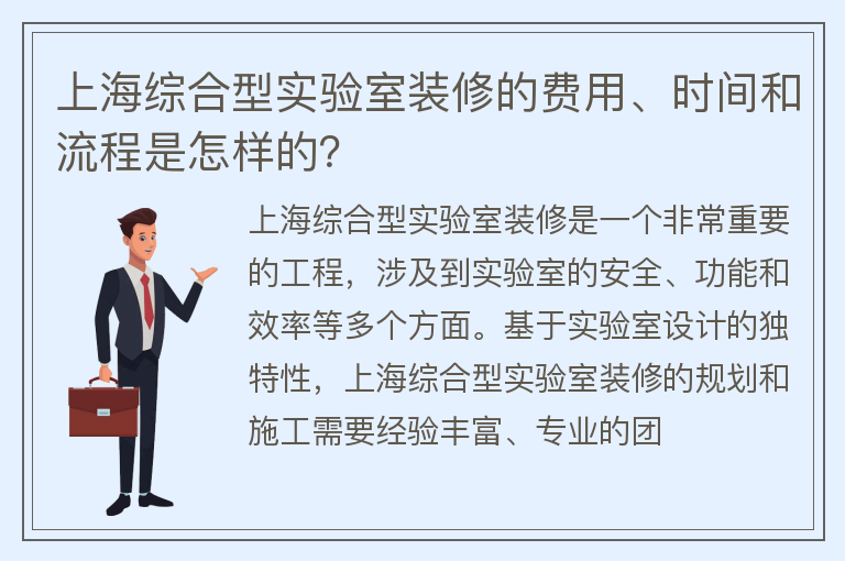 上海作為中國的經濟中心和科技創新高地,其實驗室裝修費用的問題備受關注。本文將通過解析實驗室裝修的不同方面,詳細闡述上海綜合型實驗室裝修費用的估算方法和相關因素,幫助讀者了解上海綜合型實驗室裝修費用的大致范圍。