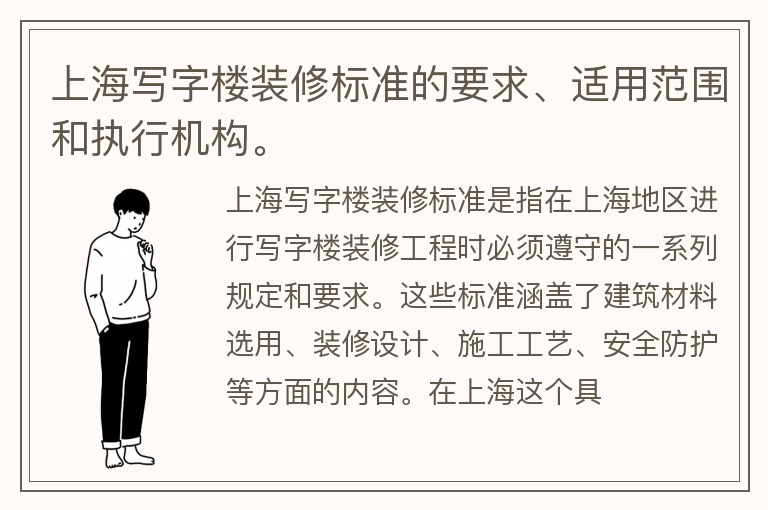 在如今的經濟快速發展下,上海作為全球金融中心之一,擁有眾多的寫字樓項目。在寫字樓裝修過程中,涉及到各種標準和規范,那么,上海寫字樓裝修標準的執行機構是誰呢?本文將詳細介紹上海寫字樓裝修標準的執行機構,并從不同角度探討其重要性。