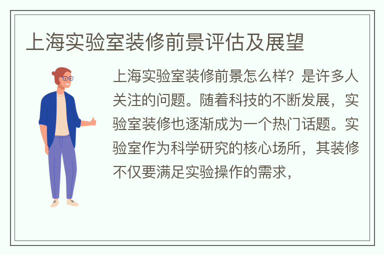 在上海這樣一個國際化大都市,實驗室裝修行業正蓬勃發展。本文將從五個方面探討上海實驗室裝修的前景及其樂觀性。