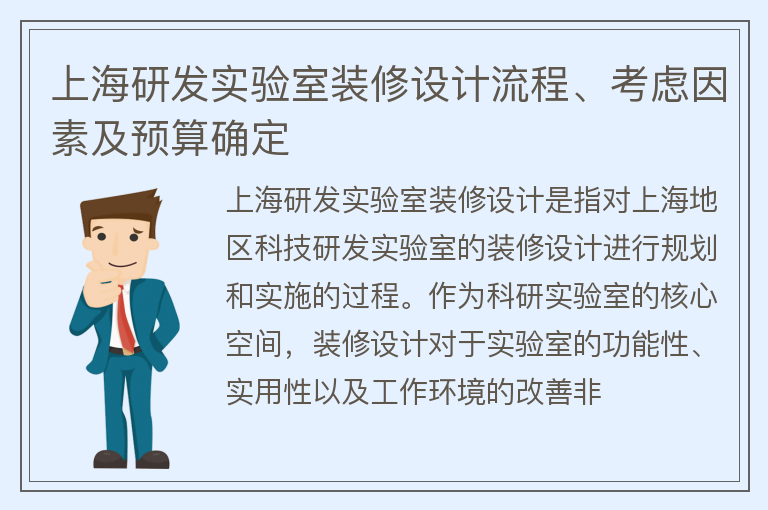 上海作為我國科技創新中心,研發實驗室的建設越來越受到關注。而研發實驗室的裝修設計預算是一個重要的考量因素,本文將對上海研發實驗室裝修設計的預算確定進行詳細闡述。