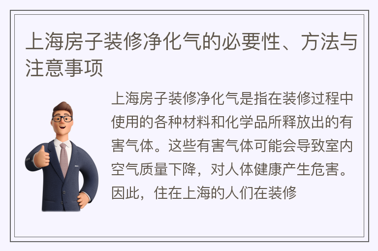 隨著社會的不斷發展,人們對于居住環境的要求也越來越高。在整個裝修過程中,凈化氣的處理至關重要。特別是在上海這樣的大城市,空氣質量本就不是很好,如果不注重處理凈化氣,將對家庭成員帶來很大的害處。所以,本文將詳細介紹上海房子裝修凈化氣需要注意哪些事項。