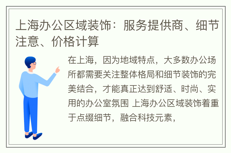 在上海,因為地域特點,大多數辦公場所都需要關注整體格局和細節裝飾的完美結合,才能真正達到舒適、時尚、實用的辦公室氛圍